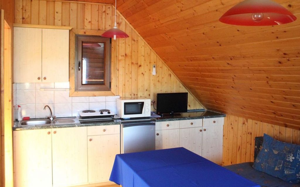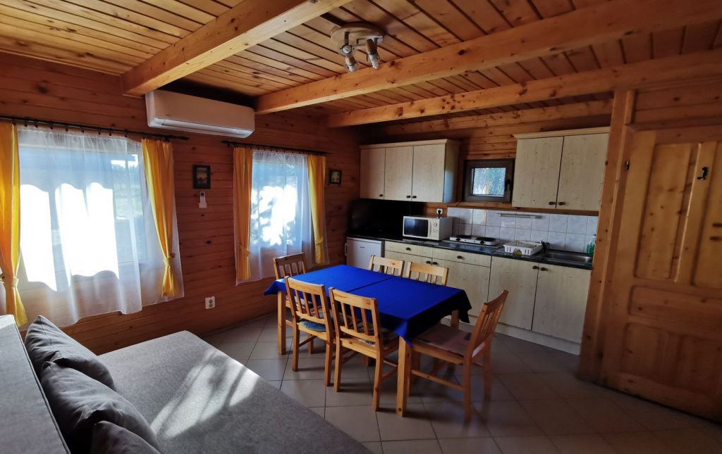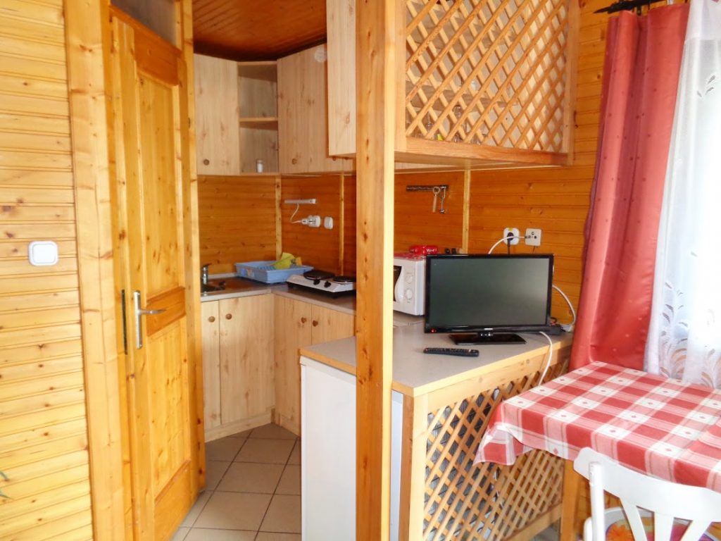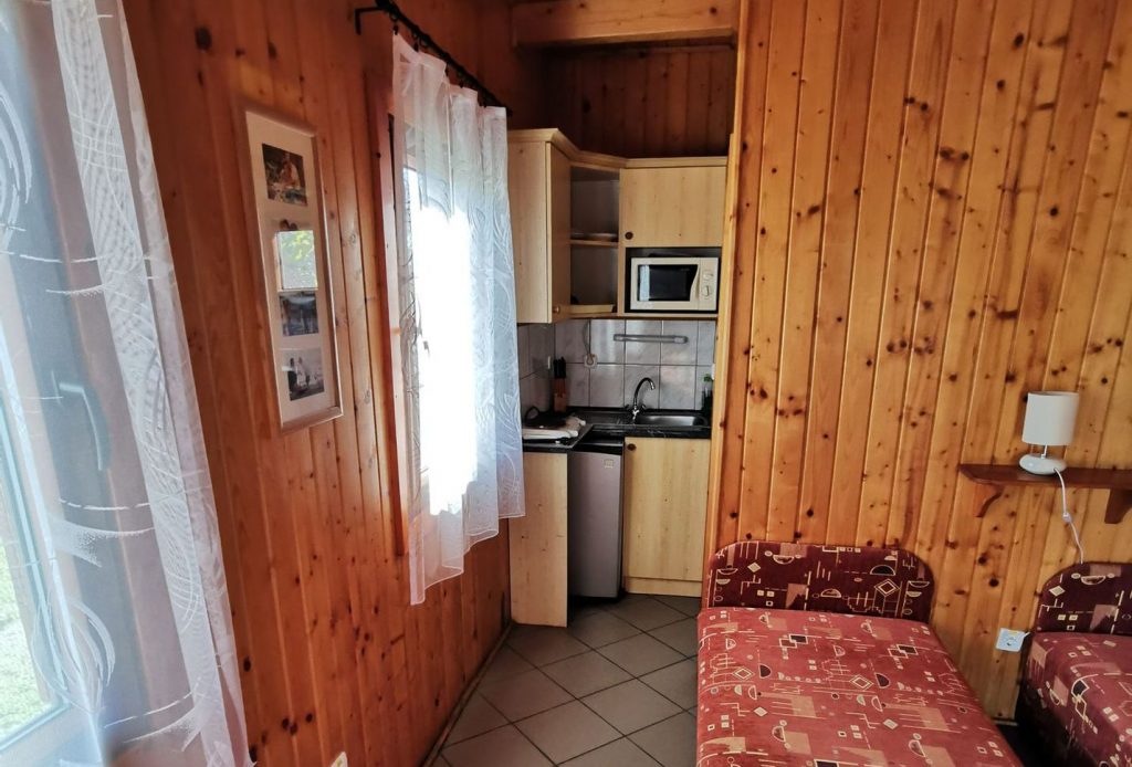 Felszerelt konyha (mikrosütő, főzőlap, hűtő)