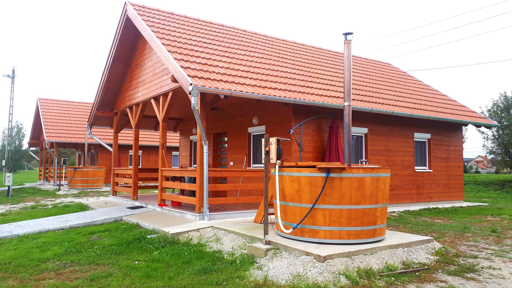 Faházaink télen-nyáron, már szabadtéri fürdődézsával is bérelhetők! A családi házak, a deluxe házak, és a különálló kis ház közelében bérelhető fürdődézsa.